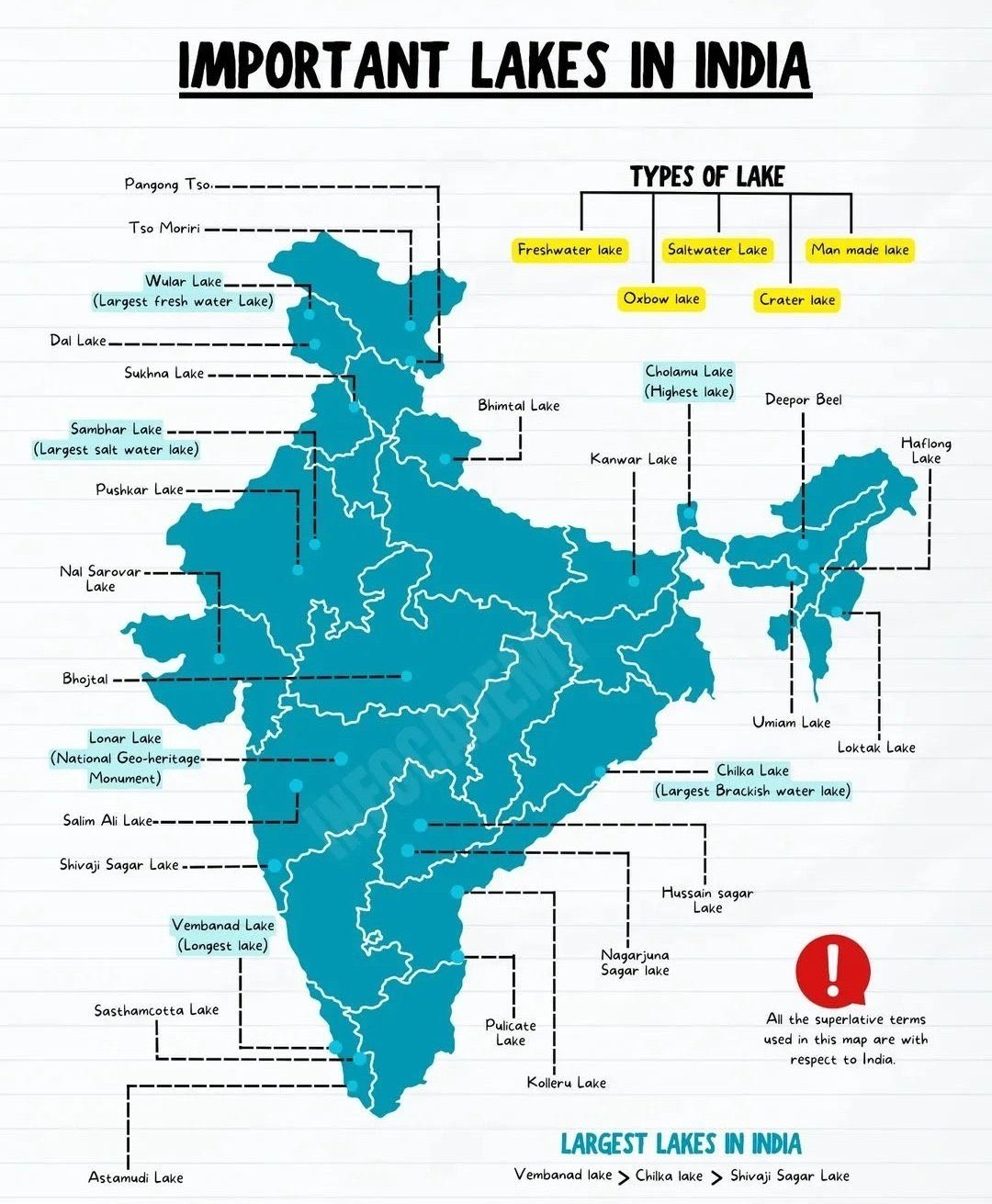 India Lakes Map – The initiative, part of a national effort to mitigate Glacial Lake Outburst Floods (GLOF), carries strategic significance due to the area’s proximity to disputed territories and ongoing geopolitical t . scientists and security officials have taken up expeditions to glaciers at an altitude of 4500m and above to map the threat they could pose to populations downstream in the event of a glacial lake .