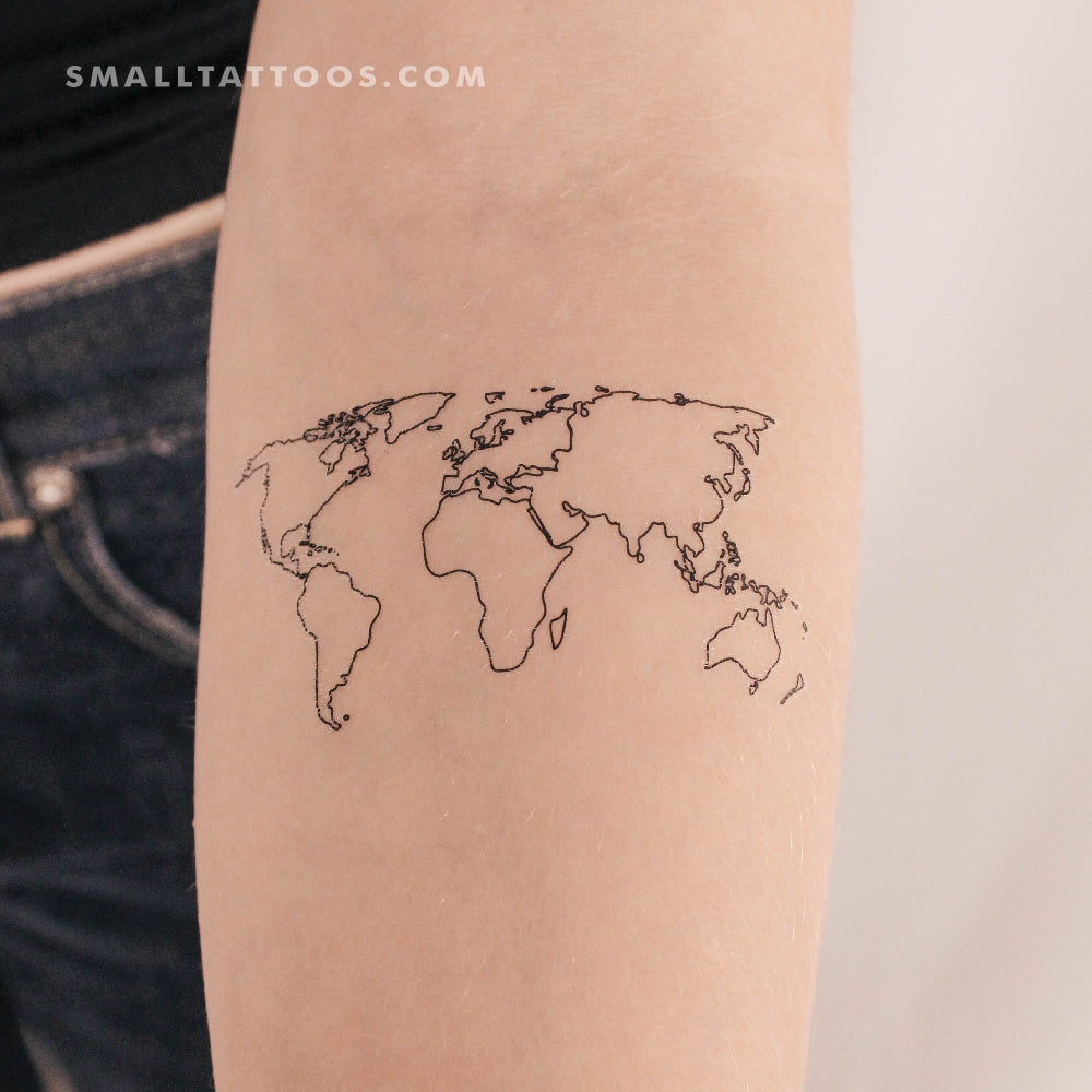 World Map Tattoo Temporary Tattoo (Set of 3) – Small Tattoos